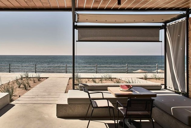 Το υδάτινο στοιχείο κυριαρχεί με τη «λίμνη» 4.000 μέτρων να εναρμονίζεται με τον περιβάλλοντα ελαιώνα του ξενοδοχείου. Οι επισκέπτες μπορούν να επιλέξουν ανάμεσα σε δύο bars και τρία εστιατόρια. Ανάμεσα σε αυτά και το Fine Dining, που τελεί υπό την καθοδήγηση του βραβευμένου chef Μιχάλη Νουρλόγλου.