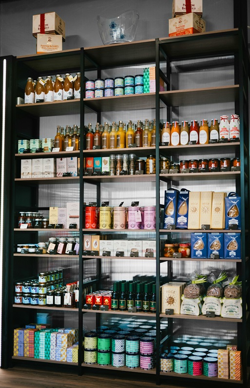 Ανάμεσα στα υψηλής ποιότητας deli προϊόντα, θα βρεις το μοναδικό ιταλικό πασχαλινό τσουρέκι Colomba, παλαιωμένα μπαλσάμικα, πέρλες μπαλσάμικου, chutneys, μαρμελάδες, χαβιάρι, αλλαντικά από την Ισπανία και την Ιταλία, καθώς και εκλεκτά ελληνικά προϊόντα από επιλεγμένους μικροπαραγωγούς από όλη την Ελλάδα, όπως τις χειροποίητες σοκολάτες της Esophy και τα υπέροχά ζεστά και κρύατους ροφήματα.