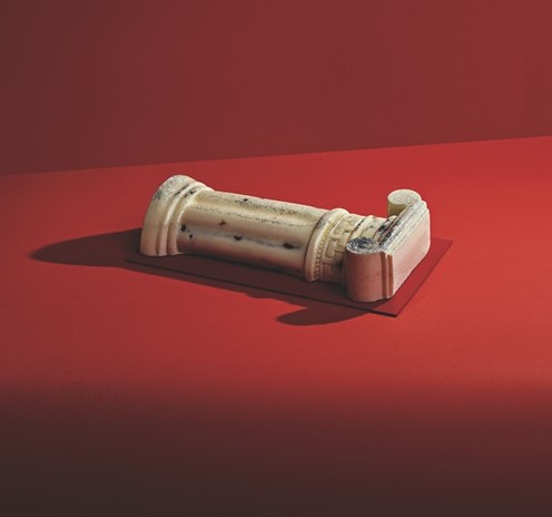 Τι συμβαίνει όταν ένας ζαχαροπλάστης έχει σπουδές σε σχολή Καλών Τεχνών; Το μόνο σίγουρο είναι ότι η εμφάνιση των γλυκών του δεν πρόκειται να έχει διεκπεραιωτικό χαρακτήρα. Το στήσιμο των γλυκών του Δημήτρη Οικονομίδη ενέχει στοιχεία γλυπτικής, αρχιτεκτονικής, και άλλων τεχνών, όπως για παράδειγμα η πάστα σε σχήμα κίονα με κιονόκρανο ιωνικού ρυθμού που ξεχωρίσαμε από τις νέες του δημιουρ- γίες. Τόσο αληθοφανής που διατηρεί ακόμα και τα νερά του μαρμάρου σε ένα γλυκό που έχει σαν βάση το μπισκότο βουτύρου με μία κρέμα αμυγδάλου και κάστανου και ολοκληρώνεται με μία μους βανίλιας και κρεμέ κάστανου. Κάθε κουταλιά και μια συμπυκνωμένη μπουκιά χειμερινής θαλπωρής.