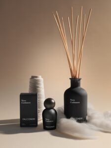 Πέρα από τα προσωπικά αρώματα, η σειρά Cashmere Essence επεκτείνεται και στον χώρο, με αρώματα για το σπίτι και υφάσματα, διαθέσιμα στα καταστήματα Falconeri και στο επίσημο site της μάρκας. Μια πρόσκληση να μεταφερθεί η χαρακτηριστική οσφρητική ταυτότητα της Falconeri στην καθημερινότητα.