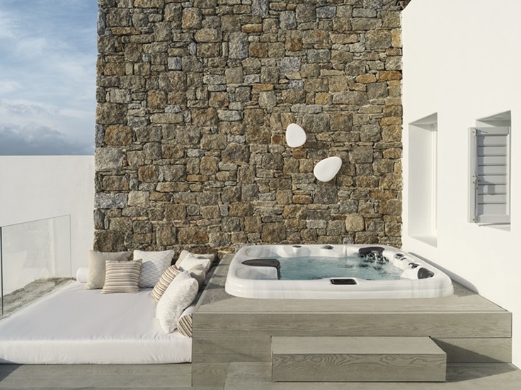 διαμορφωμένες και επιπλωμένες, σκιάζονται από πέργκολα και προσκαλούν στην ένωση με το υγρό στοιχείο.Είτε με πισίνα είτε με τζακούζι, πλαισιώνουν την απόλυτηπολυαισθητηριακή εμπειρία- μια εμπειρίαπου περικλείει όλα όσα χαρακτηρίζουν το DEOS. Βυθίζοντας τους επισκέπτες σε κάτι εντελώς άυλο, προσφέρουν ένα οπτικό ανάλογο της απέραντης υδάτινης έκτασης που έχει συγκινήσει και εμπνεύσει τον άνθρωπο από την αρχαιότητα.