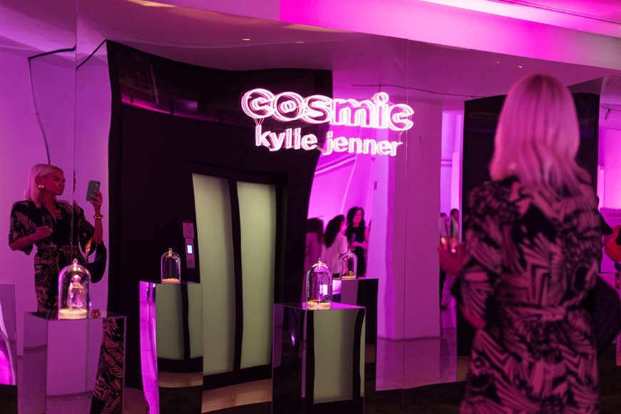 Προσωπικότητες από τον χώρο της μόδας, της ομορφιάς, της τέχνης, των media και πολύτιμοι συνεργάτες που τους ενώνει η υψηλή αισθητική και η αγάπη για το brand, είχαν την ευκαιρία να περιηγηθούν σε έναν κόσμο αιθέριο, κομψό και φρέσκο, όπως ακριβώς και το brand. Οι εκλεκτοί καλεσμένοι γνώρισαν τη νέα αρωματική σύνθεση του “Cosmic Kylie Jenner”, που θα ξεδιπλωνόταν βήμα-βήμα στη συνέχεια μέσα από τέσσερις διαφορετικές προθήκες οι οποίες τοποθετήθηκαν μέσα στον χώρο. Σαγκουίνι και γιασεμί, παιώνια και goldenamber, βανίλια και κέδρος, τα συστατικά που συνθέτουν το “Cosmic Kylie Jenner” βρίσκονταν στο κέντρο της προσοχής, έτοιμα για να τα ανακαλύψουν.