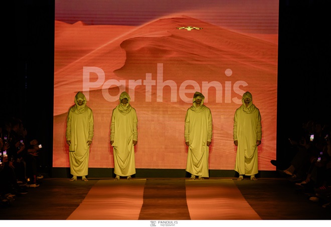 Στην συνέχεια, στην Πέτρινη Αποθήκη του ΟΛΠ ο οίκος Parthenis παρουσίασε τη SS25 συλλογή με τίτλο METAMORPHOSES, η οποία επαναδιατυπώνει τα καθημερινά βασικά κομμάτια, εισάγοντας νέα εμβληματικά σχέδια που αποπνέουν αίσθηση ανανέωσης και ατομικότητας.
