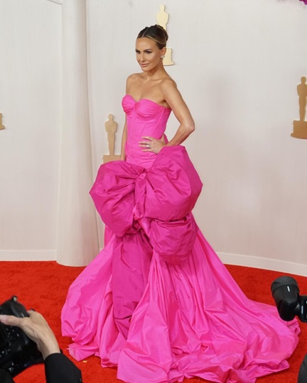 Η Keltie Knight, ανταποκρίτρια του «E! News» στο κόκκινο χαλί των Oscar, έκλεψε όλα τα βλέμματα με μία μακριά στράπλες ροζ δημιουργία με έντονους όγκους στο κάτω μέρος που της χάριζαν μοναδική κίνηση.