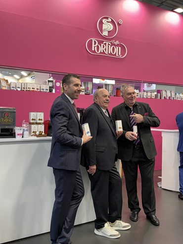 Ο Πρόεδρος και Διευθύνων Σύμβουλος της Espresse S.A Portioli Espresso Νίκος Πάπας, ο CEO Moreno Portioli και ο Managing Director Mattia Portioli στην HORECA 2026