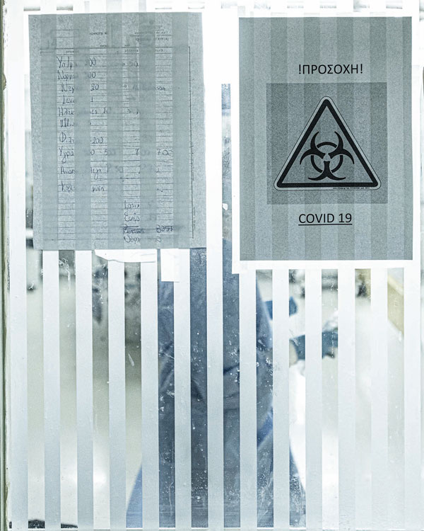 Ο χώρος έχει χωριστεί σε δύο διαδρόµους. Ο “κίτρινος διάδροµος” είναι αυτός µε τα ύποπτα κρούσµατα και ο “κόκκινος διάδροµος” µε τα επιβεβαιωµένα περιστατικά COVID-19. Ευτυχώς, δεν έχει νοσήσει κανένας από το προσωπικό και αυτό σηµαίνει, αν µη τι άλλο, ότι τηρούµε όλα τα απαραίτητα µέτρα ασφαλείας. Αν κάποιος εργαζόµενος αισθανθεί πονόλαιµο, βήχα ή πυρετό, αναφέρει αµέσως τα συµπτώµατα στην ειδική ιατρό, εκείνη παίρνει το ιστορικό του και εφόσον κριθεί απαραίτητο ο εργαζόµενος µπαίνει σε ολιγοήµερη καραντίνα. Όταν παρθεί το δείγµα και βεβαιωθούµε ότι είναι αρνητικός, επανέρχεται στην εργασία του.