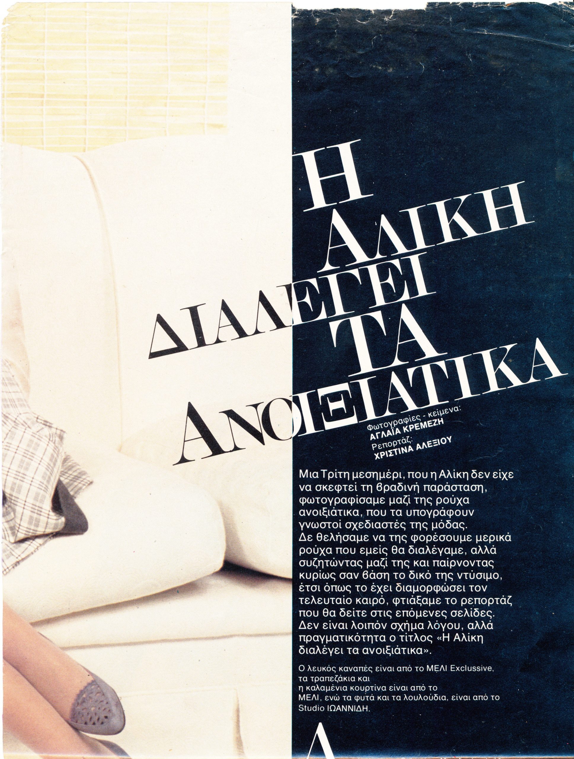 Η Αλίκη ποζάρει με ρούχα Valentino, Sonia Rykiel και Gianfranco Ferré, ενώ όλα τα κοσμήματα είναι από την προσωπική συλλογή του οίκου Ζολώτας.