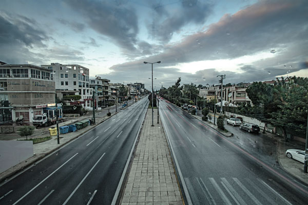 ΛΕΩΦΟΡΟΣ ΚΗΦΙΣΙΑΣ: το συνηθισμένο μποτιλιάρισμα του κεντρικού οδικού άξονα έχει δώσει τη θέση του στην ερημιά.