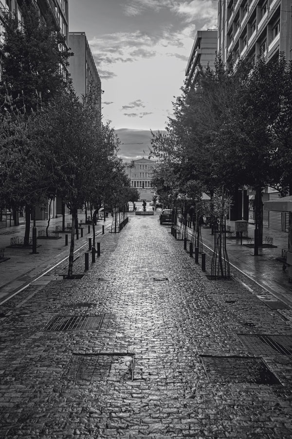 ΟΔΟΣ ΕΡΜΟΥ: Ούτε shopaholics, ούτε τουρίστες, ούτε πλανΟδιοι μουσικοί, ούτε street artists. Στο βάθος, η Βουλή των Ελλήνων.
