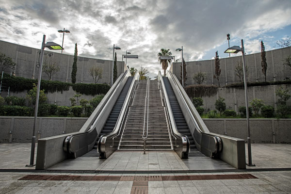 ΚΕΡΑΜΕΙΚΟΣ: Οι κυλιόμενες σκάλες σε ακινησία, στην έξοδο του σταθμού του μετρό προς την πλατεία.