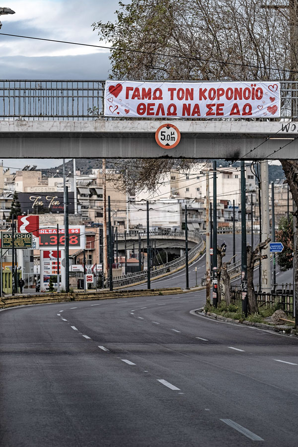 Οι άνθρωποι άλλαξαν. Οι ζωές μας περιχαρακώθηκαν στα διαμερίσματα και οι κινήσεις περιορίστηκαν στα απολύτως απαραίτητα. Ο κόσμος άλλαξε. Ο πλανήτης ερήμωσε, οι πλατείες άδειασαν, οι φωτεινές επιγραφές και τα νέον έσβησαν κάνοντας τις νύχτες μας σκοτεινές, χωρίς μουσική, με μόνο soundtrack τους ήχους από ελάχιστα αυτοκίνητα και κάποιες σειρήνες. Ο βραβευμένος φωτογράφος Κοσμάς Κουμιανός κάνει ένα φωτογραφικό οδοιπορικό στην πόλη, που είναι σαν να ξεπήδησε από ταινία καταστροφής.