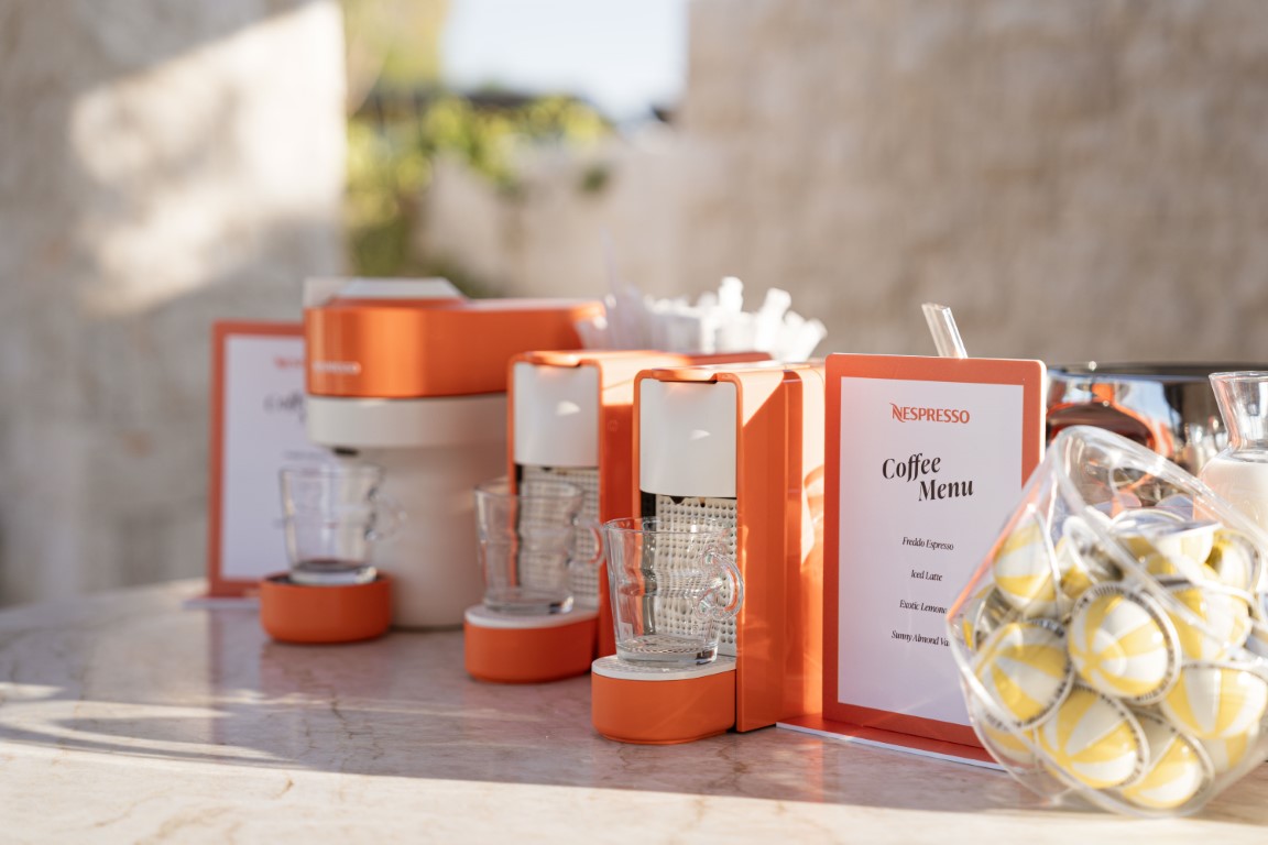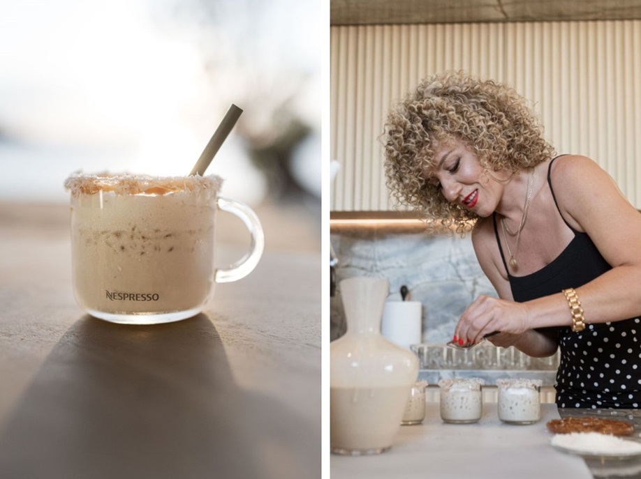 Σε ένα άκρως μεσογειακό σκηνικό με χρώμα και μουσική, οι εκλεκτοί καλεσμένοι είχαν την ευκαιρία να δοκιμάσουν μοναδικές κρύες συνταγές καφέ Nespresso δίπλα στη θάλασσα, με αποκορύφωμα το δροσιστικό coffee cocktail που έφτιαξε απόκλειστικά για τη Nespresso η βραβευμένη chef Γεωργιάννα Χιλιαδάκη εμπνευσμένη από τον αγαπημένο της καφε Ice Leggero της Nespresso.