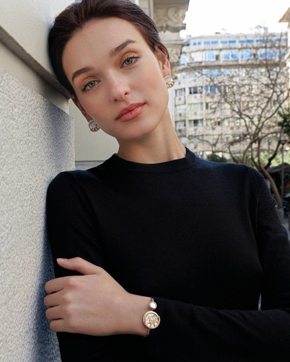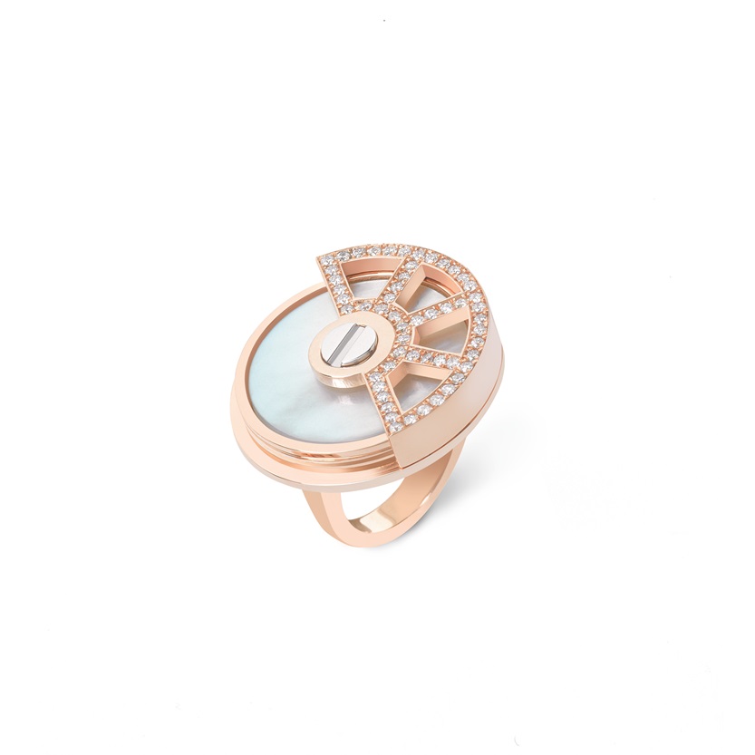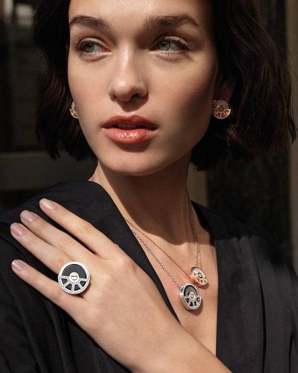 Μένοντας πιστός στην τέχνη του χειροποίητου, ο οίκος Kassis σχεδίασε κάθε κόσμημα αυτής της ιδιαίτερης συλλογής – ορόσημο διακριτικής πολυτέλειας, δίνοντας ζωή σε μία πολύτιμη και με άρτια τεχνοτροπία συναρμολόγηση ενός λαμπερού ρότορα που περιστρέφεται με τις κινήσεις του σώματος σαν ενα ημικύκλιο στολίδι με διαμάντια.