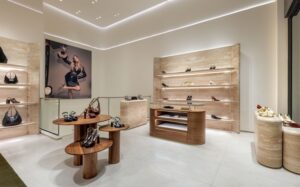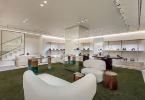 Τα πράσινα χαλιά και οι άνετοι χώροι αναμονής προσδίδουν μια αίσθηση οικειότητας και πολυτέλειας, ενώ οι καθρέφτες ενισχύουν το φυσικό φως, δημιουργώντας ένα περιβάλλον που καλεί τους επισκέπτες να απολαύσουν μια εμπειρία shopping γεμάτη φινέτσα και άνεση. Στη νέα μπουτίκ παρουσιάζονται οι πιο πρόσφατες συλλογές γυναικείων και ανδρικών παπουτσιών και αξεσουάρ του Jimmy Choo, που συνδυάζουν τη λάμψη του brand με τη σύγχρονη αισθητική μιας urban γκαρνταρόμπας.