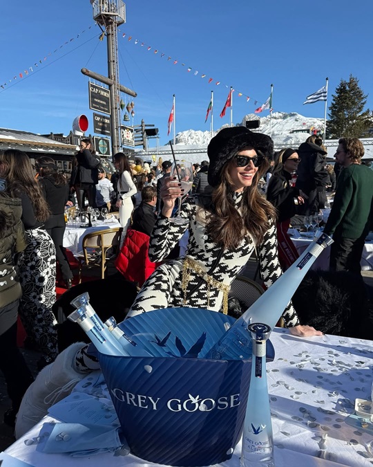 Από τη δοκιμή αυθεντικής γαλλικής κουζίνα, όπως το κλασικό raclette, μέχρι τα cozy party με premium cocktail, παρέα με τους εκλεκτούς διεθνείς καλεσμένους της Grey Goose Altius, μέχρι μια πτήση με ελικόπτερο προς το Cap Horn, το διάσημο σε όλον τον κόσμο après-ski εστιατόριο και club με το ανεπανάληπτο vibe και ένα high energy party με διεθνές crowd και μοναδική ατμόσφαιρα, η Ηλιάνα Παπαγεωργίου συγκέντρωσε όλα τα βλέμματα πάνω της, ντυμένη με εντυπωσιακή ολόσωμη φόρμα, μακρύ παλτό, (faux) γούνινο καπέλο, πίνοντας Grey Goose Altius, το απόλυτο statement drink, σερβιρισμένη πολύ παγωμένη, με θρυμματισμένο πάγο ή ακόμη και σε ποτήρι με… χιόνι.