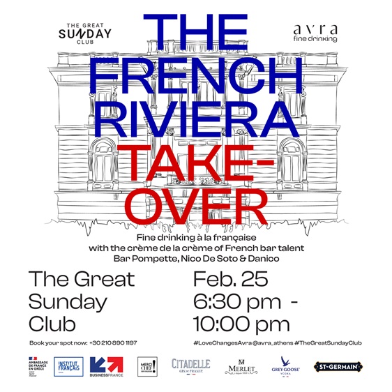 Το The Great Sunday Club του Φεβρουαρίου στο Avra σηματοδοτεί την έναρξη μιας εθνικής εβδομάδας γαστρονομίας που ονομάζεται «Merci Chef!». Πραγματοποιείται από τις 25 Φεβρουαρίου έως την 1η Μαρτίου και φιλοξενείται από τη Γαλλική Πρεσβεία στην Ελλάδα. Το «Merci Chef!» γιορτάζει τη φιλία μεταξύ των δύο ευρωπαϊκών εθνών μέσα από επιδείξεις, masterclasses, γευσιγνωσίες και πολλά άλλα, παρουσιάζοντας επίσης τις δεξιότητες των τεχνιτών του «Meilleur Ouvrierde France» (M.O.F.). Ο τίτλος «Meilleur Ouvrier de France» μεταφράζεται ως ο «Καλύτερος Τεχνίτης της Γαλλίας» και είναι γνωστός για τη δυσκολία της κατάκτησής του. Το Avra είναι ενθουσιασμένο που, στο πλαίσιο του The Great Sunday Club, υποδέχεται τον πρώτο νικητή αυτού του διακεκριμένου βραβείου, τον Maxime Hoerth από το Bar Pompette στο Τορόντο.