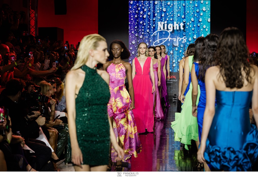 Η πρώτη μέρα της Εβδομάδας Μόδας έκλεισε ο οίκος μόδας Kathy Heyndels και ο Marios Togos με την συλλογή “Night Drops”. Μια συλλογή που το κάθε της ρούχο είναι σαν μια μοναδική σταγόνα νερό. Sexy παιχνιδιάρικα και αέρινα φορέματα που τονίζονται από τις διακυμάνσεις των αποχρώσεων από το πιο σκούρο στο πιο φωτεινό. Μαλακά υφάσματα που γλιστράνε στο σώμα σαν δροσοσταλίδες. Το μπλε του νερού και του Ουρανού είναι η παλέτα που παίζει σημαντικό ρολό στις δημιουργίες αυτής της collection.