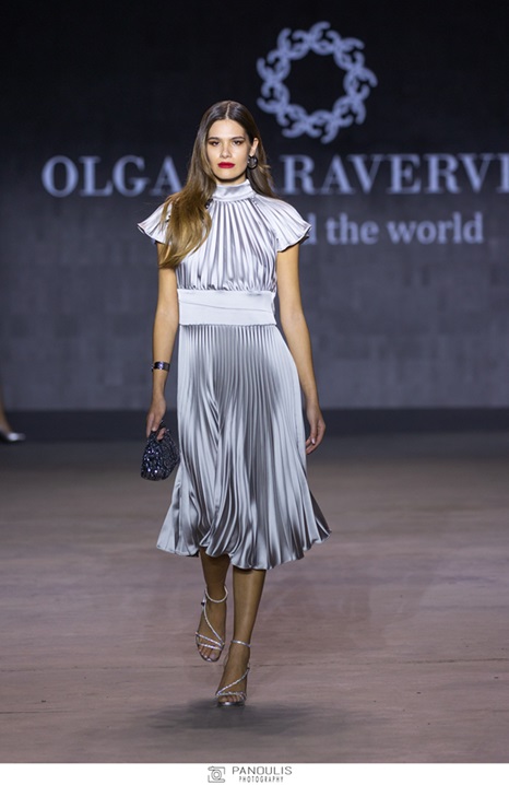 Στην συνέχεια, ακολούθησε η σχεδιάστρια μόδας Olga Karaververi με την “All around the world”, Fall/Winter ’25 συλλογή . Η θεματική της συλλογής “All Around the World”  αντλει έμπνευση από την πολυμορφία και τον πλούτο των πολιτισμών της υφηλίου. Μέσα από κομψά και δυναμικά σχέδια, η Όλγα Καραβερβέρη συνδυάζει παραδοσιακά στοιχεία από διαφορετικές χώρες με σύγχρονες γραμμές, αποδίδοντας φόρο τιμής στη μοναδικότητα του κάθε πολιτισμού. Κάθε δημιουργία αφηγείται μια ιστορία και ταυτόχρονα παραμένει πιστή στις υψηλές αισθητικές αξίες και την απαράμιλλη ποιότητα που χαρακτηρίζουν τις συλλογές της.