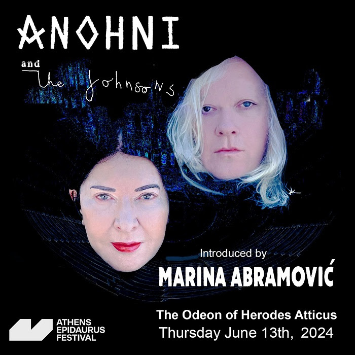 Η Marina Abramovic και η Anohni συνεργάστηκαν για πρώτη φορά μαζί το 2011 στην όπερα The Life and Death of Marina Abramović. H Anohni συμμετείχε ως music director αλλά και ερμηνευτής σε αυτή την βιογραφία της “νονάς” της performance art, που εμπνεύστηκε ο Robert Wilson και πήρε διθυραμβικές κριτικές όπου παίχτηκε. Σε αυτήν την πολύκροτη παραγωγή, μία διασταύρωση θεάτρου, όπερας και εικαστικής τέχνης, ο Robert Wilson εξιστορεί την εκπληκτική ζωή και το έργο της Marina Abramović, η Anohni έγραψε και την πρωτότυπη μουσική και μαζί τους συμπρωταγωνιστούσε και ο Willem DaFoe.
