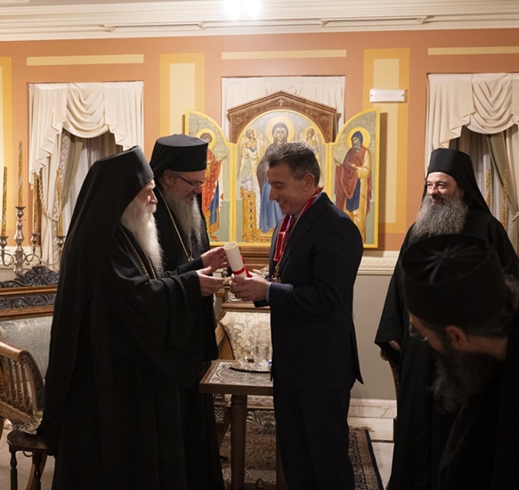 Ο Δημήτρης Χριστοφιλέας έλαβε τον Μεγαλόσταυρο του Αγίου Γεωργίου, από τον Καθηγούμενο της Μονής Γέροντα Αλέξιο, σε μια σεμνή τελετή που πραγματοποιήθηκε στο ιστορικό μοναστήρι.