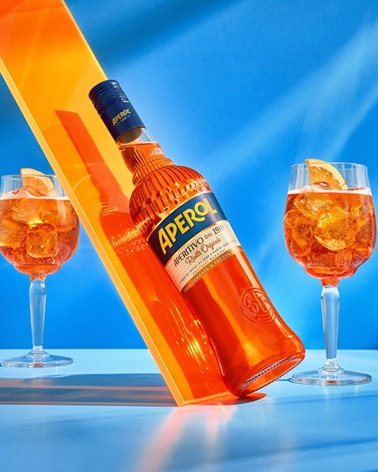 Η μπροστινή ετικέτα αφήνει το πορτοκαλί χρώμα να πρωταγωνιστήσει, ενώ η διαφανής πίσω ετικέτα παρέχει οδηγίες για το τέλειο σερβίρισμα του Aperol Spritz, ενισχύοντας τη φιλοσοφία του brand: να φέρνει τους ανθρώπους κοντά και να δημιουργεί στιγμές χαράς. Το ανάγλυφο μονόγραμμα των αδελφών Barbieri, δημιουργών του Aperol το 1919, κοσμεί κάθε φιάλη ως διακριτική σφραγίδα τεχνογνωσίας και ιταλικής παράδοσης.