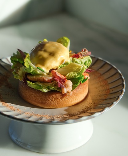 Στο brunch menu, η γαλλική φινέτσα συναντά τις πιο τολμηρές γεύσεις, με πιάτα όπως το Croque Truffé Madame με μπεσαμέλ με μαύρη τρούφα, τα Eggs Benedict με butter-poached lobster και saffron hollandaise, αλλά και το Wagyu striploin με foie gras bordelaise.