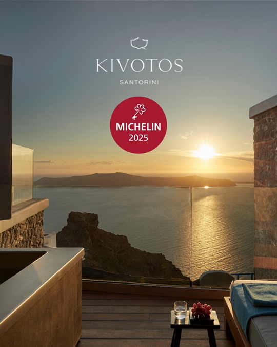 Το KIVOTOS SANTORINI, μέσα σε μόλις τρία χρόνια λειτουργίας, κατάφερε να αποσπάσει Κλειδί MICHELIN, την πρώτη χρονιά που ο Οδηγός επέλεξε ξενοδοχεία στην Ελλάδα. Μετά τα εστιατόρια, πλέον και τα ξενοδοχεία αποκτούν Κλειδιά αναγνωρισιμότητας.