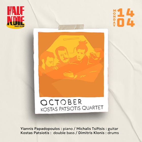 Στη σκηνή του Half Note Jazz Club ανεβαίνει τη Δευτέρα 14 Απριλίου ο διακεκριμένος συνθέτης και κοντραμπασίστας Κώστας Πατσιώτης με το ξεχωριστό κουαρτέτο του παρουσιάζοντας το project “October”, ένα δημιούργημα που απέσπασε εξαιρετικές κριτικές στην Ελλάδα και στο εξωτερικό από το 2023 που κυκλοφόρησε.