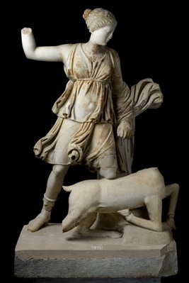 Μαρμάρινο άγαλμα Αρτέμιδος Ελαφηβόλου, Ύστερη Ελληνιστική εποχή ΑρχαιολογικόΜουσείοΔήλου, Α00449© Υπουργείο Πολιτισμού Φωτογραφία: ΑνδρέαςΣαντρουζάνος