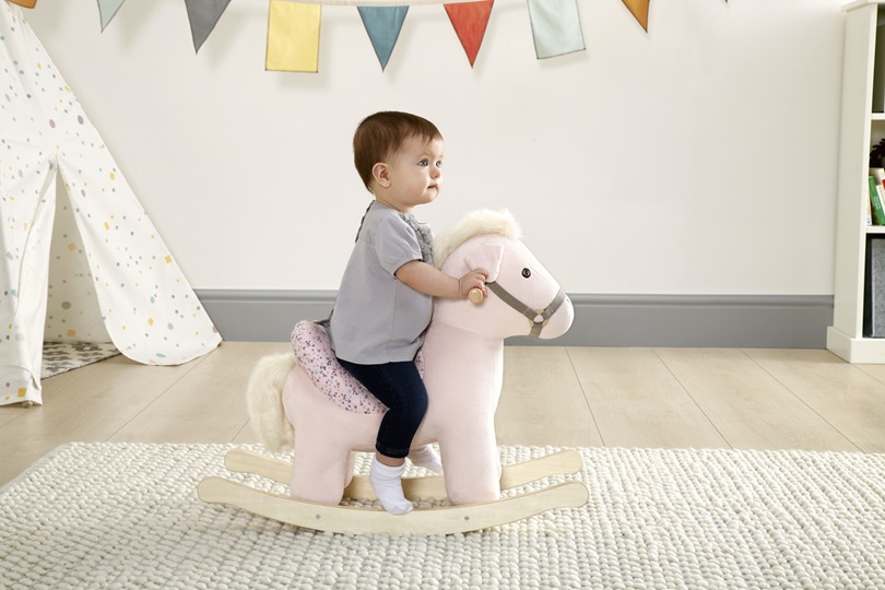 Τη Belle, το κουνιστό ροζ αλογάκι, με το υπέροχοfloralprint ύφασμα στο κάθισμά του, και αυτάκι που κουδουνίζει και κάνει απαλούς ήχους.