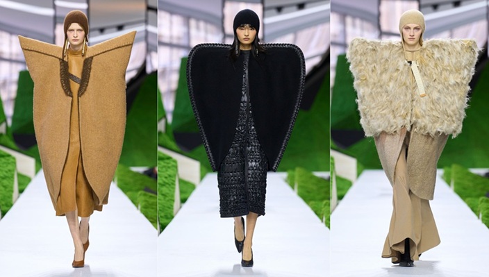 Η ζωή μέσα στα τοπία της φύσης δημιουργεί μια αρμονία ανάμεσα στο ένδυμα και το περιβάλλον. Η χλωρίδα και η πανίδα αφήνουν το αποτύπωμά τους στα ρούχα, εμπνέοντας υφάσματα και τεχνικές που μοιάζουν να ανήκουν στο ίδιο το τοπίο. Ανανεωμένα animal prints υφαίνονται σε καμβά και denim, ενώ φανταστικά λουλούδια σχηματίζονται πάνω στο δέρμα ως διακοσμητικά στοιχεία – και μερικές φορές ως προστασία.
