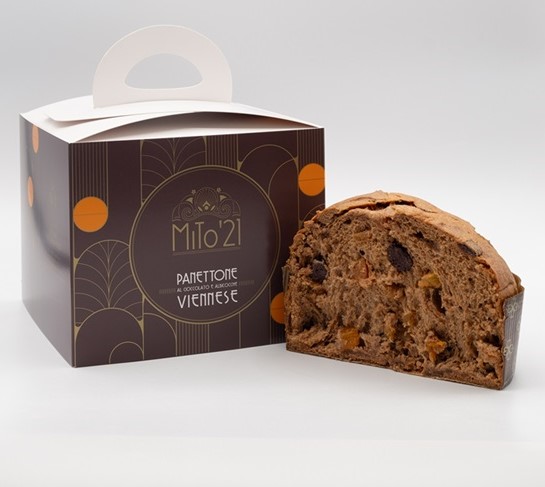 Αυτά τα Χριστούγεννα ο Μιχάλης Τυράκης εμπλουτίζει τη συλλογή του MiTo21 με μια ακόμα δημιουργική γεύση. Με έμπνευση τη διάσημη βιενέζικη τούρτα SacherTorte μάς παρουσιάζει το Panettone Viennese. Η νέα αυτή γεύση έχει έναν συνδυασμό μαύρης σοκολάτας και βερίκοκου σε μια έκδοση panettone με την υπογραφή της υψηλής δεξιοτεχνίας που χαρακτηρίζει τα MiTo21.To panettone Viennese είναι ένα ξεχωριστόpanettone. Τα υπόλοιπα MiTo21 έχουν ως κοινή βάση το πρώτο ζύμωμα και διαφοροποιούνται στο δεύτερο με την προσθήκη των συστατικών που τα χαρακτηρίζει. Στο Panettone Viennese, όμως, το κακάο και η σοκολάτα μπαίνουν από το πρώτο ζύμωμα, κάτι που του χαρίζει άλλωστε και το υπέροχο καστανό του χρώμα.