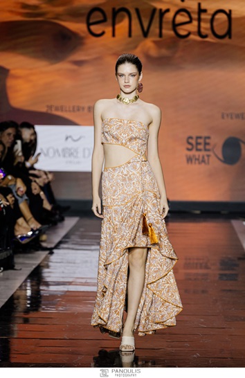 Envreta: Παρουσίασε τη συλλογή “ Enchanted Oasis” που είναι εμπνευσμένη από το μαγευτικό τοπίο και τα αρχιτεκτονικά θαύματα των αραβικών ερήμων. Η συλλογή αγκαλιάζει το αρμονικό συνδυασμό του πορτοκαλί, λευκού και τις αποχρώσεις της ανατολής.