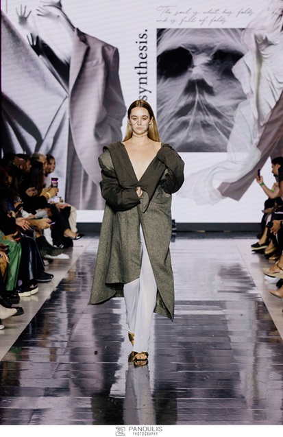 Στυλιάνα Κουλουντή: Παρουσίασε την συλλογή “the tomorrow’s today”. Πηγή έμπνευσης αποτελεί η διαφορετικότητα του σώματος και η αλλαγή που μπορεί να κάνει ο κάθε άνθρωπος στο σώμα του. Ο όγκος που έχουν τα ρούχα είναι εμπνευσμένος από της καμπύλες του σώματος . Το concept πήρε την κατεύθυνση του sci-fi δηλαδή πιο διαστημικό και πιο φουτουριστικό. Το λευκό χρώμα συμβολίζει την αγνότητα και την ελευθερία.