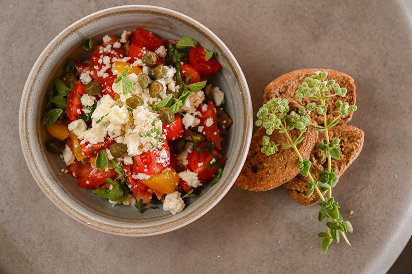 Στο μενού θα βρει κανείς και αρκετές χορτοφαγικές επιλογέςγια να καλύπτονται οι διατροφικές συνήθειες όλων των καλεσμένων, χωρίς να στερούνται τη γεύση και τη δημιουργικότητα. Χαρακτηριστικό παράδειγμα η γιουβετσάδα με τα άγρια μανιτάρια Εύβοιας και την παλαιωμένη γραβιέρα ή το ριζότο γεμιστά.