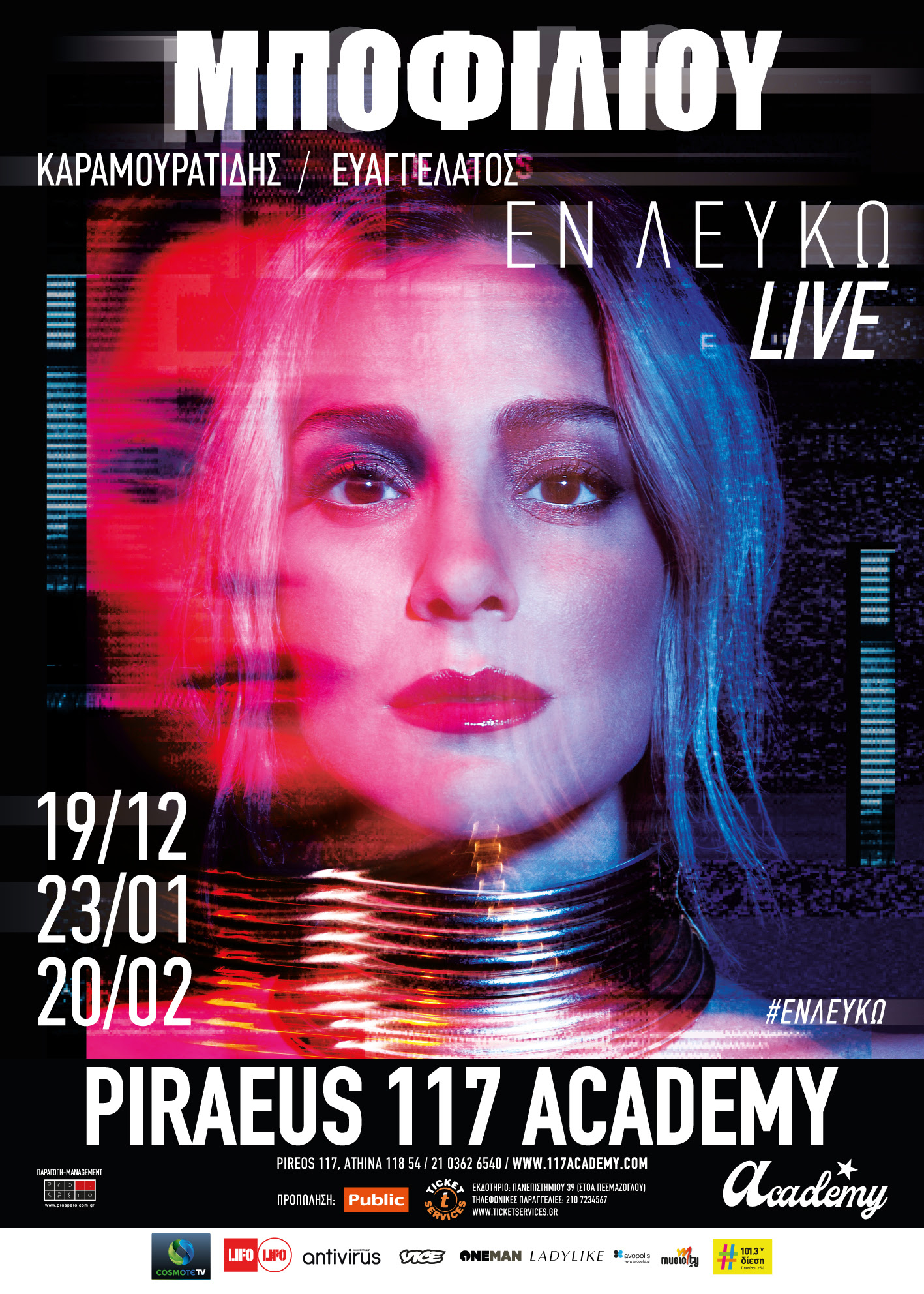 Οι αφίσες για συναυλίες, συνήθως, εξαντλούνται στο όνομα του καλλιτέχνη που τραγουδάει. Ωστόσο, στην αφίσα για τις τρεις συναυλίες Εν Λευκώ Live, στο Piraeus 117 Academy, εκτός από τη Νατάσσα Μποφίλιου, αναφέρονται επίσης ο Θέμης Καραμουρατίδης και ο Γεράσιμος Ευαγγελάτος, ο συνθέτης και ο στιχουργός αντίστοιχα που έχουν δημιουργήσει τα πιο γνωστά κομμάτια της. «Γνωριστήκαμε τον Ιανουάριο του 2004», μου λέει ο Θέμης, «στις ακροάσεις νέων δημιουργών και ερμηνευτών της Μικρής Άρκτου. Με τον Γεράσιμο συνεργαστήκαμε αμέσως γράφοντας ένα τραγούδι, αλλά γίναμε φίλοι και οι τρεις. Η βασική μου ταυτότητα ως δημιουργού είναι μέσα σε αυτή την τριάδα και αυτό πραγματικά με βοηθάει να αναπτύξω και τις υπόλοιπες συνεργασίες μου». Η συναυλία τους τον Δεκέμβριο ήταν sold out και το ίδιο προβλέπεται για εκείνες που θα ακολουθήσουν στον ίδιο χώρο στις 23 Ιανουαρίου και στις 20 Φεβρουαρίου, αλλά και στο Principal Club Theater της Θεσσαλονίκης στις 8 Φεβρουαρίου.