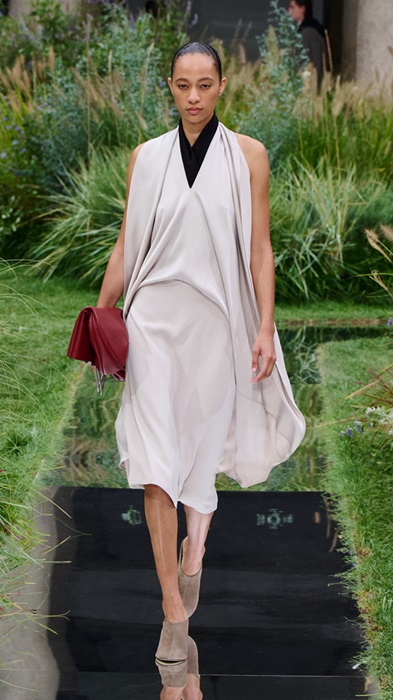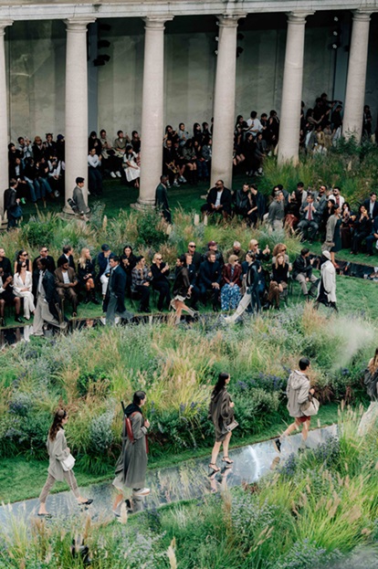 Ο προαύλιος χώρος του παλατιού μετατράπηκε σε μια καταπράσινη όαση ηρεμίας: ένα αισθητικά καταπραϋντικό τοπίο προσφέροντας ανακούφιση σε μια πόλη που χαρακτηρίζεται από την έντονη δραστηριότητα. Τα μοντέλα περπάτησαν κατά μήκος ενός οργανικού, ελικοειδούς διαδρόμου μέσα στο βοτανικό τοπίο, ενισχύοντας περαιτέρω την αντίθεση μεταξύ της παραδοσιακής επαγγελματικής ένδυσηςκαι της έννοιας της 5-9 απόδρασης.