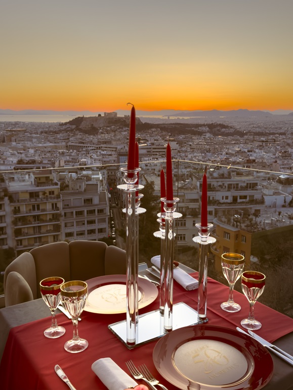 Οι προτάσεις του ξενοδοχείου πολλές και ιδιαίτερες για το βράδυ του Αγ. Βαλεντίνου. Ζήστε ένα γαστρονομικό ταξίδι με τον/την αγαπημένο/η σας στο πολυβραβευμένο rooftop εστιατόριο, La Suite Lounge με πανοραμική θέα στην Ακρόπολη και το Λυκαβηττό μέχρι και τα νησιά του Σαρωνικου . Απολαύστε το Valentines Menu με τις δημιουργίες του executive chef , Στέφανου Παπανικολάου εκεί που τα φώτα της πόλης συναντούν τα αστέρια.