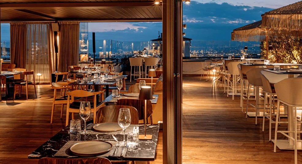 Στο ειδικά διαμορφωμένο μενού του Brown Acropol Rooftop Restaurant ξεχωρίζουν το φουά γκρα με γλυκό κεράσι και τραγανή μπαγκέτα, το φιλέτο μοσχαριού με σπαράγγια, τσιπς πατάταςκαι σάλτσα μανιταριών αλλά και η τάρτα σοκολάτας αρωματισμένη με bourbonκαι τσάτνεϊ φράουλας.