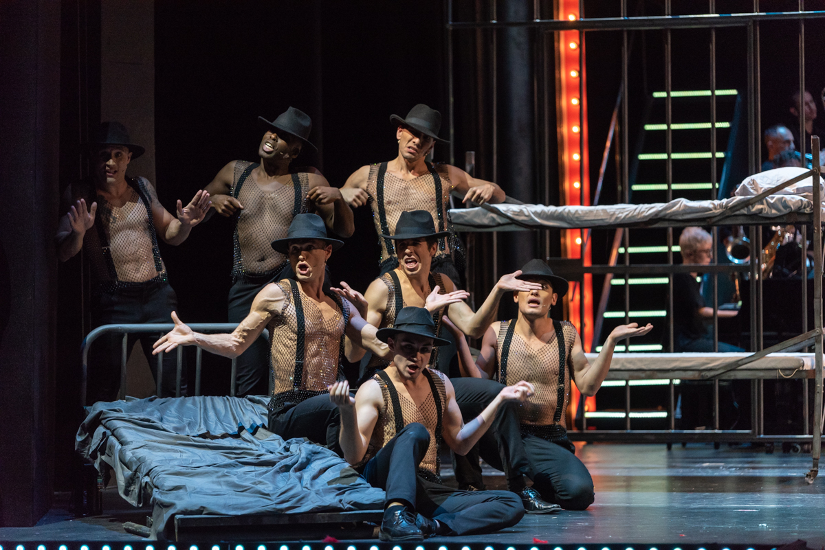 Το δίλημμα του Κακλέα είναι: «Να κρατήσουμε τη λιτή τζαζ καμπαρέ εκδοχή του Fosse ή να την εμπλουτίσουμε με κάτι πιο χαριτωμένο;». Το στήσιμο περιλαμβάνει την ορχήστρα πάνω στη σκηνή, όπως στο πρωτότυπο, απλώς τα τεκταινόμενα δεν περιορίζονται στην αρχική σκηνοθετική λιτότητα της διεξαγωγής τους πάνω στην πίστα του καμπαρέ. Τουλάχιστον, είναι πασπαλισμένα με καλό γούστο, ωραία ενδυματολογία και κρατάνε τη ζαρτιέρα στις γυναίκες και τους ημίγυμνους άντρες με καπέλο και τιράντα στους χορευτές. Τα μάτια του υπέροχου και αγαπημένου Αιμιλιανού Σταματάκη γυαλίζουν κυριολεκτικά στον ρόλο του αδίστακτου δικηγόρου Μπίλι Φλιν (τον οποίο από κάποια ημερομηνία και μετά θα ενσαρκώνει ο Αργύρης Πανταζάρας), ενώ η Δάφνη Λαμπρόγιαννη παίζει με συγκρατημένη μαγκιά τη Μάμα Μόρτον.