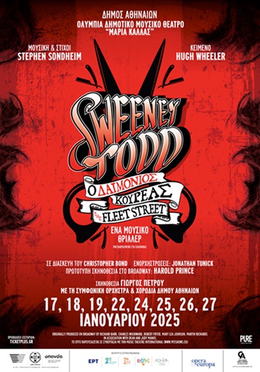To μουσικό θρίλερ Σουίνι Τόντ: Ο Δαιμόνιος Κουρέας της Fleet Street, σε μουσική και στίχους του θρύλου του αμερικανικού μουσικού θεάτρου, Stephen Sondheim και κείμενο του Hugh Wheeler έρχεται από τις 17 έως τις 27 Ιανουαρίου 2025 στο ΟΛΥΜΠΙΑ, ΔΗΜΟΤΙΚΟ ΜΟΥΣΙΚΟ ΘΕΑΤΡΟ «ΜΑΡΙΑ ΚΑΛΛΑΣ», σε σκηνοθεσία και μουσική διεύθυνση του Γιώργου Πέτρου, σκηνικά του Πάρι Μέξη, κοστούμια της Γιωργίνα Γερμανού και φωτισμούς της Στέλλας Κάλτσου.
