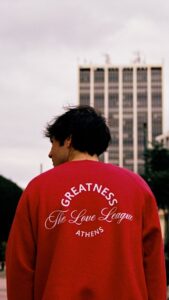 Στο επίκεντρο της ιστορίας βρίσκεται το limited edition Greatness Love League Crewneck, το οποίο φορούν οι πρωταγωνιστές ως σύμβολο ένωσης και κοινής ταυτότητας. Ένα ρούχο που μετατρέπεται σε statement, όχι μόνο στυλιστικό αλλά και συναισθηματικό — όπως ακριβώς και ο έρωτας: ακατέργαστος, ειλικρινής, γεμάτος ένταση.