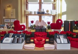 Στο GB Corner Gifts & Flavors, οι επισκέπτες ανακαλύπτουν ρομαντικά δώρα και σαγηνευτικά επιδόρπια για δύο: αφράτο μπισκουί με πραλίνα φιστικιού, κομποτέ σανγκουίνι και ελαφριά μους βανίλιας, ιδανικά για να μοιραστείτε με το αγαπημένο σας πρόσωπο. Και αν δεν μπορείτε να βρεθείτε στο ξενοδοχείο, η online boutique προσφέρει όλα τα αγαπημένα Valentine’s treats με ένα κλικ.